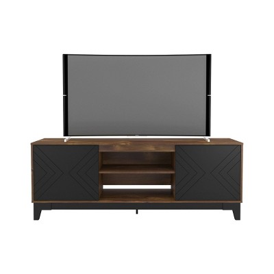 Elevate your home entertainment experience with this exquisite TV Stand crafted from durable MDF and finished with a sleek veneer. Its elegant geometric design is complemented by fluted tempered glass doors that not only enhance aesthetic appeal but also provide a seamless view of your entertainment center. Enjoy the convenience of two spacious cabinets and drawers to keep your space tidy. This TV Stand is not just a piece of furniture; it’s an essential addition to modern living spaces, expertly combining style, function, and innovative design. Perfect for televisions up to 90 inches, it offers both stability and a visually pleasing decor.