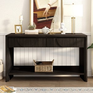 Farmhouse 55.12"Long Console Table, Wood Sofa Table with Storage Drawers & Open Shelf