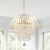 Presenting a captivating crystal chandelier featuring a jellyfish-shaped shade intricately crafted with crystal elements and dainty pendants. Its unique and elegant design radiates luxury, romance, and enchantment through the entirety of its transparent crystals. The adjustable metal chain allows for customizable installation heights. With the capacity to house three light bulbs, this chandelier promises effortless setup and comes with a one-year warranty, ensuring both beauty and reliability.