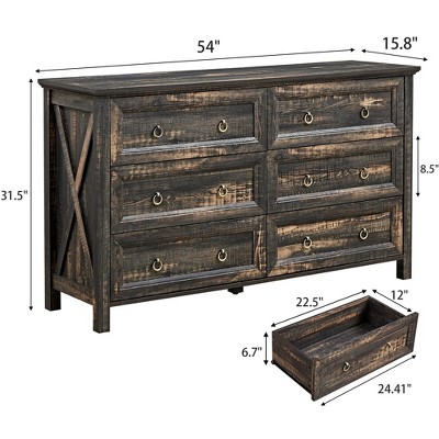 Introducing the Wood Dresser, a perfect blend of modern and farmhouse style, designed to enhance your bedroom or living room with its rustic charm. Featuring a spacious layout with eight drawers, this dresser is ideal for organizing clothing, linens, and other essentials. With durable MDF materials and sturdy construction, it promises longevity and stability. The elegant metal round drawer pulls in an antique brass finish add a touch of vintage flair. This versatile dresser not only serves as a practical storage solution but can also double as an accent piece for your home decor. Buy with confidence and transform your space today!