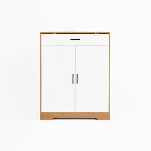 - Combined with a minimalist design and classic natural&white finish, this shoe cabinet can serve as an aesthetically pleasing and elegant storage addition to your living room, entryway and office
