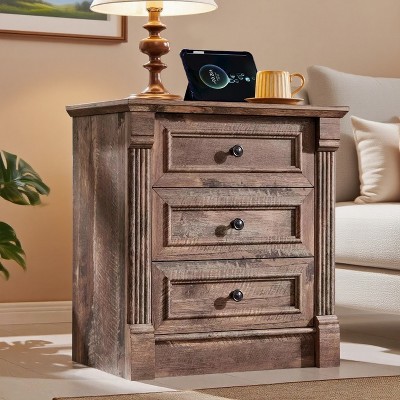 Bella Depot Vintage 2 Drawers Nightstand with Solid Wood Legs, Bedside Cabinet for Bedroom