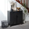 Enhance your home with this Modern Black Storage Cabinet, a stylish and functional addition that fits seamlessly into any room. Its compact design makes it ideal for smaller spaces, such as living rooms, bedrooms, or hallways, without compromising on storage. The cabinet features spacious two-tier shelving, allowing for organized storage of essentials. The unique decorative embossed design, highlighted by round wood beads on the doors, adds a modern aesthetic touch. Made from high-quality engineered wood and durable solid wood legs, this cabinet is built to last. Assembly is easy, ensuring a hassle-free setup so you can enjoy your new storage solution in no time.