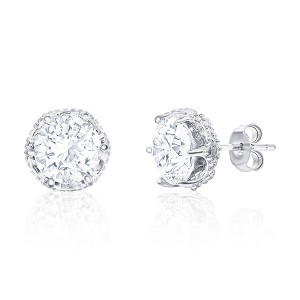 Product Name: Sterling Silver, 10mm CZ Beaded Design Studs cz, white, silver, round, post, crown-set, stud, 10mm, earrings