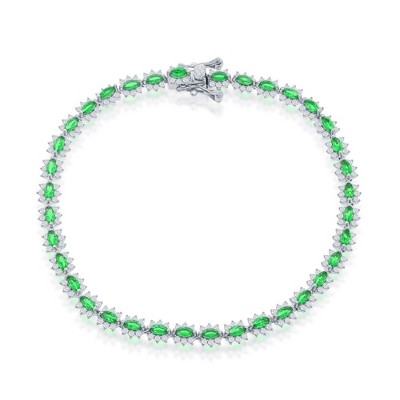 Bella Silver Sterling Silver, 3.5mm Round CZ Tennis Bracelet - Emerald Spinel - Green - 7 Inch