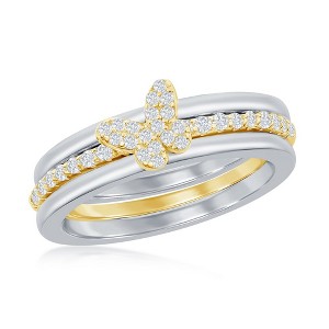 Bella Silver Sterling Silver 3-PC Micro Pave CZ Gold Plated Butterfly Ring - Available Sizes:  9 ,  8 ,  7 ,  6 - 1 of 3