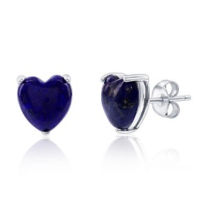 Bella Silver Sterling Silver, 3 Prong Heart Studs - Lapis - Blue - 1 of 2