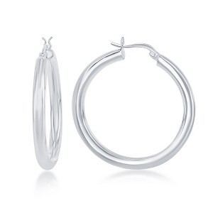 Bella Silver Sterling Silver 4x40mm High-Polished Hoop Earrings - Silver - 1 of 2