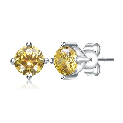 Bella Silver Sterling Silver 6MM Topaz "November" Swarovski Element Earrings - Yellow