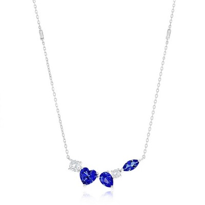 Bella Silver Sterling Silver 8MM Sapphire "September" Heart Perciosa Crystal Necklace - Blue - 16+2 Inch