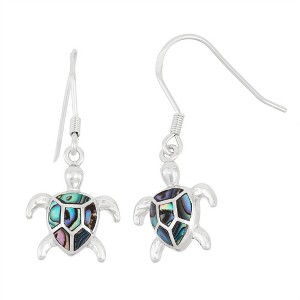 Product Name: Bella Silver Sterling Silver Abalone Turtle Earrings - Multi - Abalone, Multicolor, turtle, animal, sealife, beach, ocean, coastal, Earrings, Dangling, Fishhook,