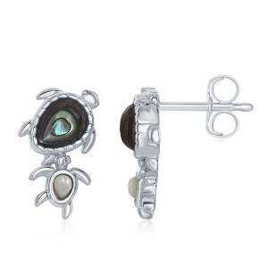 Bella Silver Sterling Silver, Abalone Turtle with MOP Baby Turtle Stud Earrings - Multi