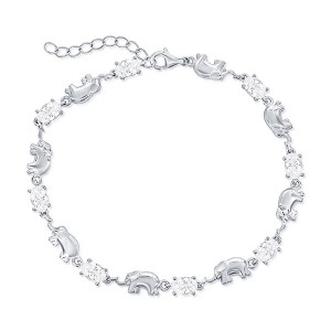 Bella Silver Sterling Silver, Alternating Elephant & Oval CZ Bracelet - Silver - 7+1 Inch