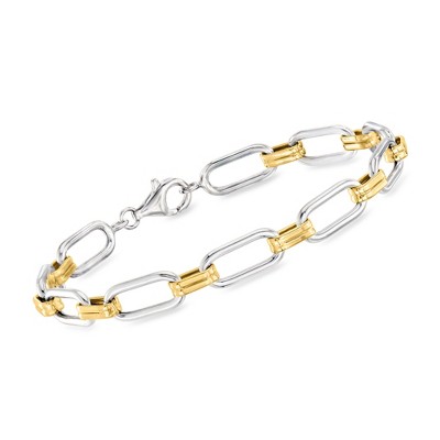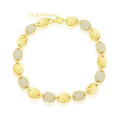 Product Name: Bella Silver Sterling Silver Alternating Paperclip Design & CZ Bracelet - Gold Plated - Gold - 7 1 Inch - paperclip, cz, bracelet, gold
