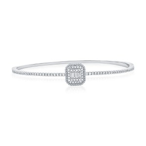 Bella Silver Sterling Silver, Baguette & Pave Rectangle CZ Bangle - Silver