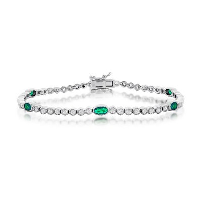 Bella Silver Sterling Silver, Baguette Tennis Bracelet - CZ Emerald - Green