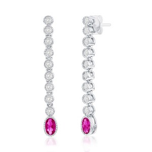 Product Name: Bella Silver Sterling Silver Beaded Outline Oval & Round CZ Earrings - Ruby - Red - cz, white, oval, ruby, long, dangle, earrings,