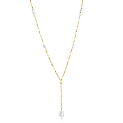 Bella Silver Sterling Silver, Beaded & Teardrop Lariat Necklace - Gold Plated - Gold - 16 Inch