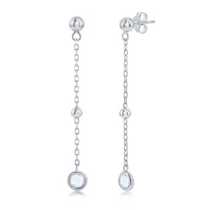 Bella Silver Sterling Silver, Bezel-Set CZ & Bead Chain Earrings - White - Silver - 1 of 2