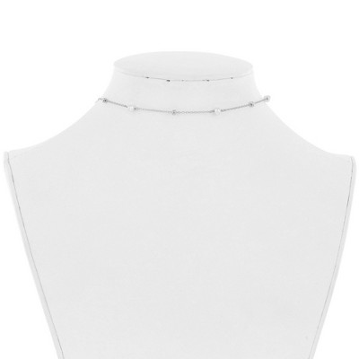 Bella Silver Sterling Silver Bezel-Set CZ & Bead Station Necklace - Emerald - Green - 16+2 Inch - 2 of 2