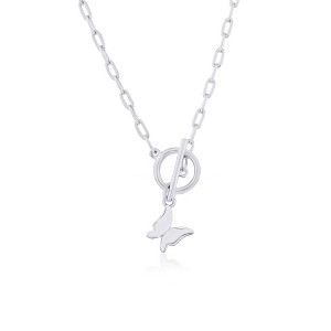 Bella Silver Sterling Silver Butterfly Charm Paperclip Toggle Necklace - Silver - 16+2 Inch - 1 of 2