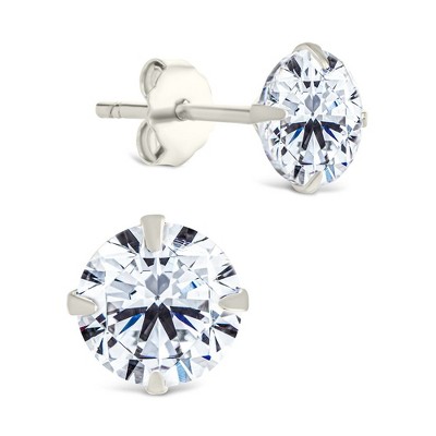 Bella Silver Sterling Silver Crown Set Prong Round CZ Stud Earrings - 1 of 2