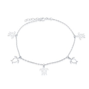 Bella Silver Sterling Silver, Cut-Out Sea Turtle Anklet - Silver - 9+1 Inch - 1 of 3