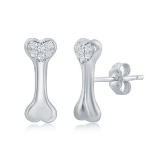 Product Name: Bella Silver Sterling Silver, CZ Dog Bone Stud Earrings - Silver - DOG, BONE, EARRINGS, STUDS, STUD, ANIMAL, CZ