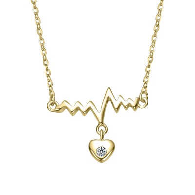 Bella Silver Sterling Silver CZ Stethoscope Heartbeat 18" Pendant Necklace - Gold Plated - Gold - 1 of 2