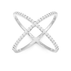 Bella Silver Sterling Silver CZ X Style Ring - Available Sizes:  6 ,  9 ,  8 ,  7 ,  5 ,  10 - 1 of 2