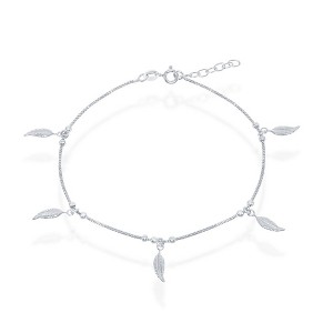 Bella Silver Sterling Silver, Dangling Leafs Anklet - Silver - 9+1 Inch - 1 of 2