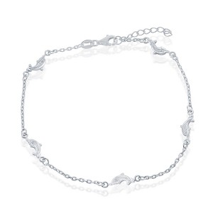 Bella Silver Sterling Silver Dolphins Anklet - Silver - 9+1 Inch - 1 of 3