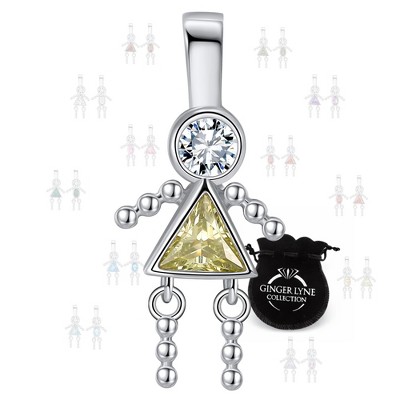Bella Silver Sterling Silver Double Heart "November" Birthstone CZ 18" Pendant Necklace  - Citrine CZ - Yellow - 1 of 3