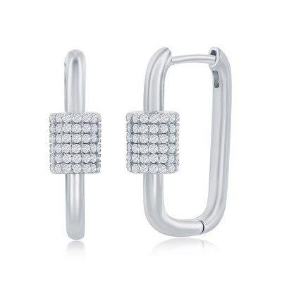 Bella Silver Sterling Silver, Double Link CZ Paperclip Earrings - Silver - 1 of 2