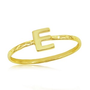 Product Name: Bella Silver Sterling Silver 'E' Initial Hammered Band Ring - Gold Plated - Gold - Size 5 - initial, ring, E, gold, dainty, personalized,