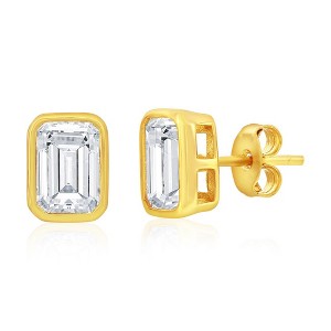 Bella Silver Sterling Silver, Emerald-Cut CZ Studs - Gold Plated - Gold