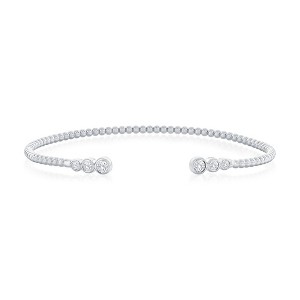 Product Name: Sterling Silver, Graduating Round CZ Beaded Bangle cz, white, graduating, beaded, bangle, bezel-set