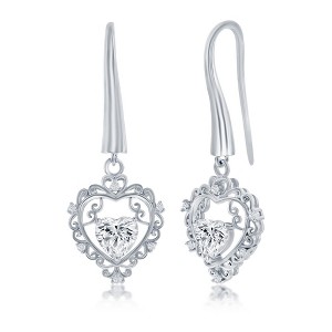 Bella Silver Sterling Silver Heart CZ Dangle Earrings - Silver - 1 of 2
