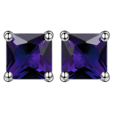 Bella Silver Sterling Silver, Birthstone Rectangle CZ Studs