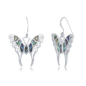 Product Name: Bella Silver Sterling Silver Large Abalone Butterfly Earrings - Multi - Abalone, Butterfly, Insect, Tropical, Natural Stone, Animal, Dangling, Earrings, Silver,