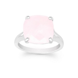 Bella Silver Sterling Silver Large Square Gemstone Ring - Rose Quartz - Available Sizes: 8 , 7 , 6