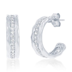 Bella Silver Sterling Silver, Lined CZ Half Hoop Earrings - Silver - 1 of 3