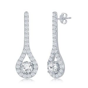 Bella Silver Sterling Silver Long Pearshaped CZ Earrings - Silver - 2 of 2