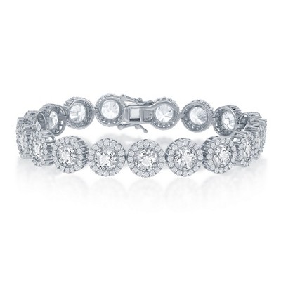 Bella Silver Sterling Silver, 'Love' Tennis, CZ Bracelet - Silver - 7+1 Inch