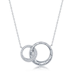 Bella Silver Sterling Silver Micro Pave CZ Interlocking Circles Necklace - Silver - 16+2 Inch - 1 of 2