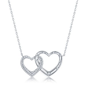 Bella Silver Sterling Silver Micro Pave CZ Interlocking Hearts Necklace - Silver - 16+2 Inch - 1 of 2