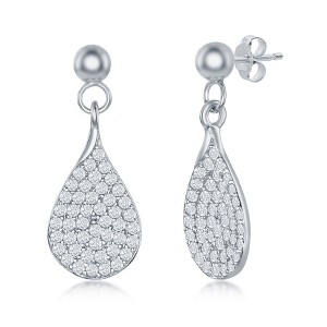 Bella Silver Sterling Silver Micro Pave CZ Pear-Shaped Earrings - Silver