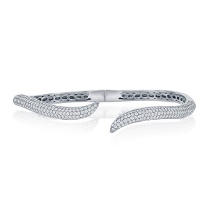 Product Name: Bella Silver Sterling Silver Micro Pave CZ Waved Bangle - Silver - cz cuff, snake cuff, cz bracelet, wave bracelet, snake bracelet