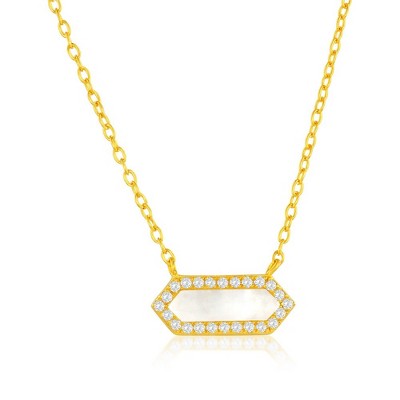 Product Name: Bella Silver Sterling Silver, MOP Heart Necklace - Gold Plated - Gold - 16 2 Inch - mop, necklace, heart, gold plated, mother of pearl