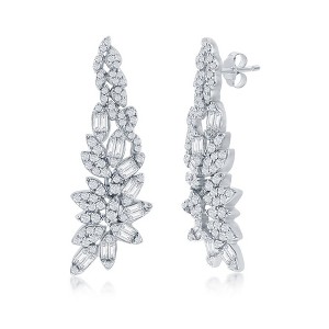Product Name: Bella Silver Sterling Silver Multi-Shaped CZ Long Earrings - Silver - long, earrings, baguette, cz, statement